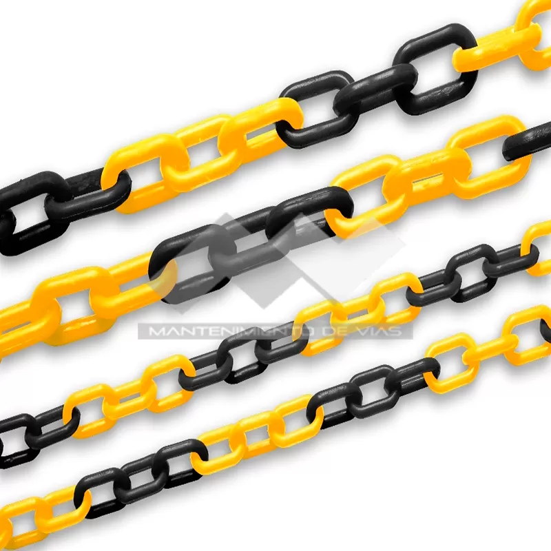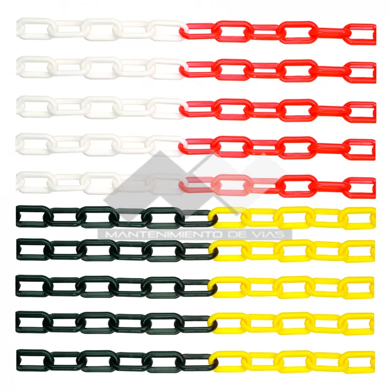La Cadena plástica está elaborada en polipropileno de alta resistencia y a su vez de bajo peso. Asimismo, tiene forma eslabonada. Hay dos tipos de cadenas plásticas para señalización según su longitud: en primer lugar, cadena de 10mts, en segundo lugar, cadena de 20mts.